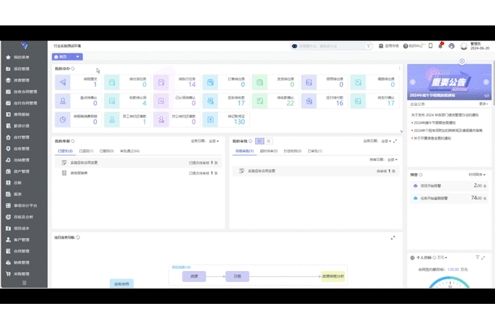 覆盖项目、合同、费控、报销、财务全流程全数据管理