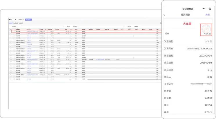 目前企企管理云已全面支持铁路电子客票,可自动识别、验真、查重,并支持企业一键取票。
