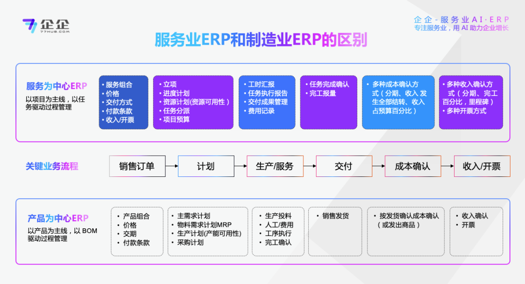 谢桂霞从业务流程的底层逻辑切入,清晰揭示了服务业ERP与制造业ERP的本质差异: