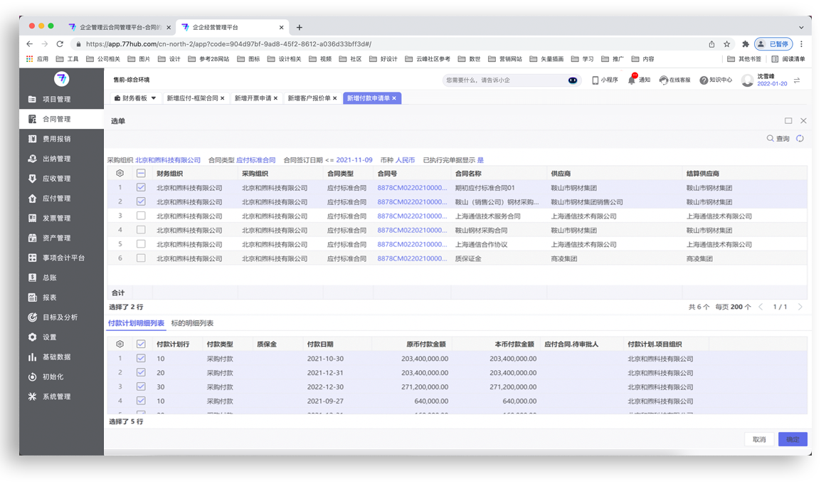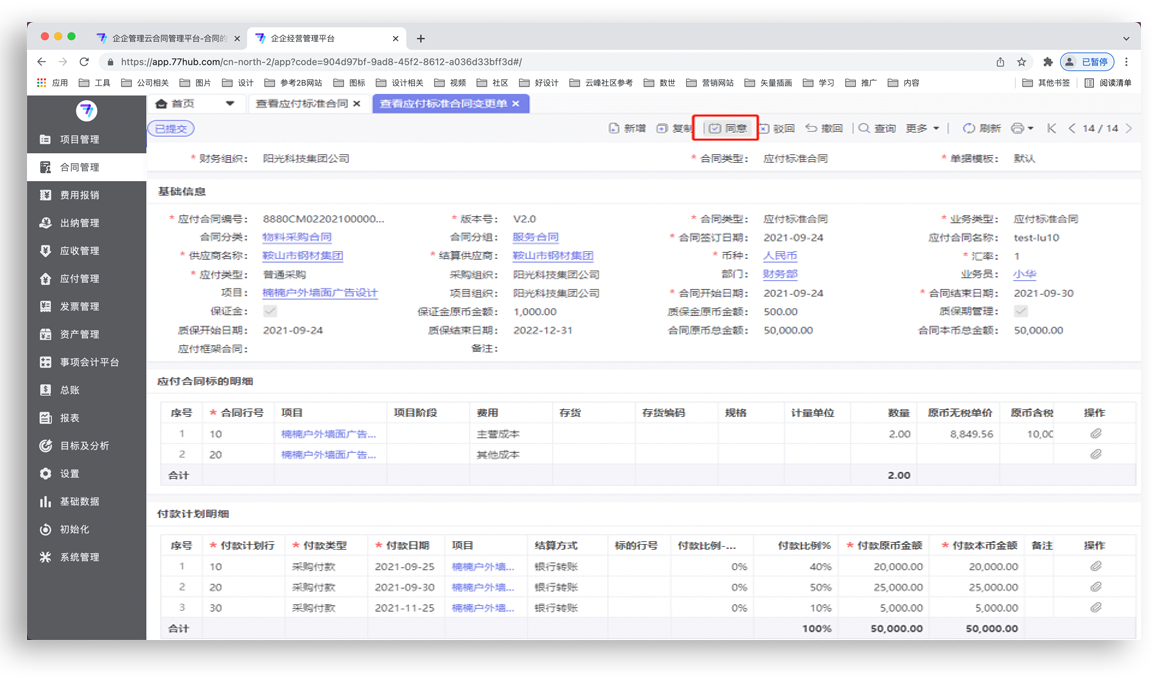 企企服务业ERP合同应付及付款管理热门功能