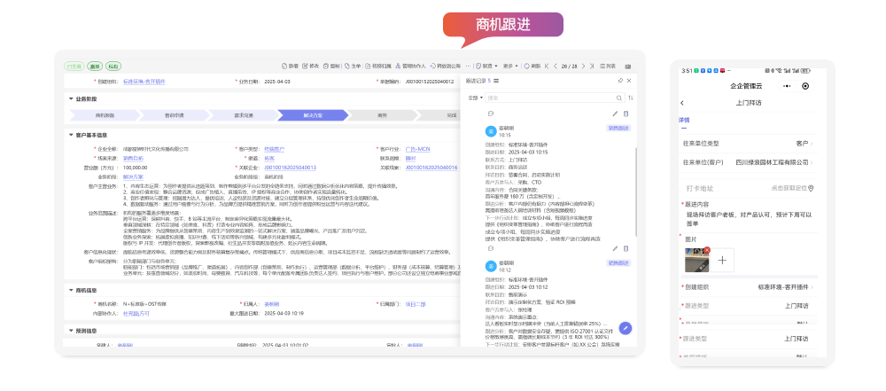 实现商机、拜访记录、定位打卡记录快速更新,界面直观友好,数据信息一目了然。