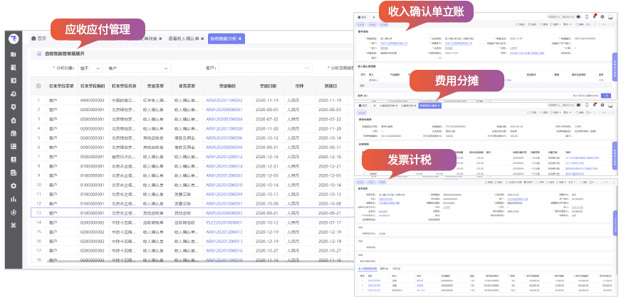 与合同管理和项目管理全面集成,支持发票税务账与收入账分离的账务处理。为企业提供各种往来款项账务处理及查询统计,实现企业往来款项及经营过程的自动预警,避免长期逾期款项造成的不利影响。