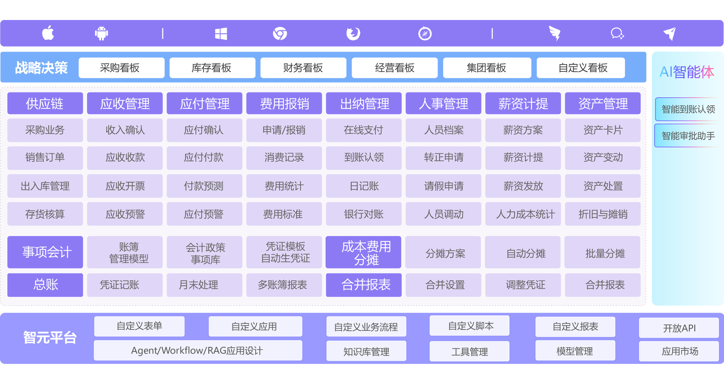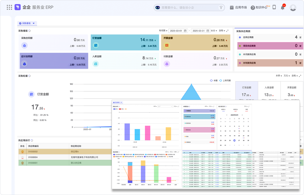 提供全面财务总账和报表支持,满足企业财务核算和分析需求。