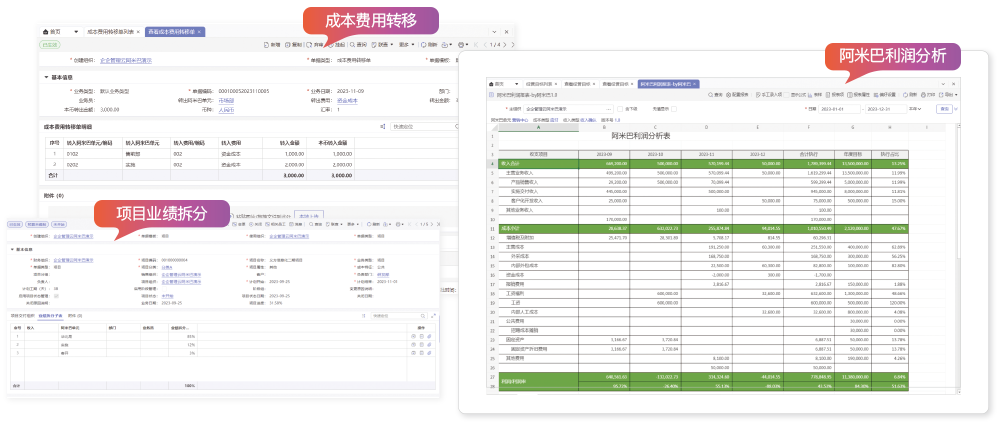 通过部门、合伙人等维度定义阿米巴核算中心。通过收入确认、业绩拆分、成本拆分、业绩结算、业绩调整等方式达到按照核算单元核算业绩的管理要求。