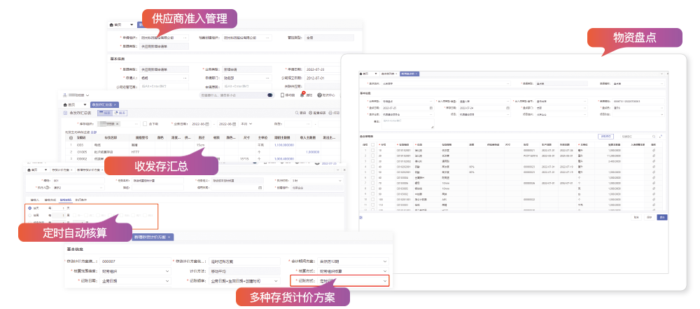 统一基础数据,支持供应商入库、供应商价格库、请购、订货、入库、采购发票等采购全过程和多种业务模式。灵活配置库存管理,实时监控库存状态。智能化成本核算,多维度分析销售过程。