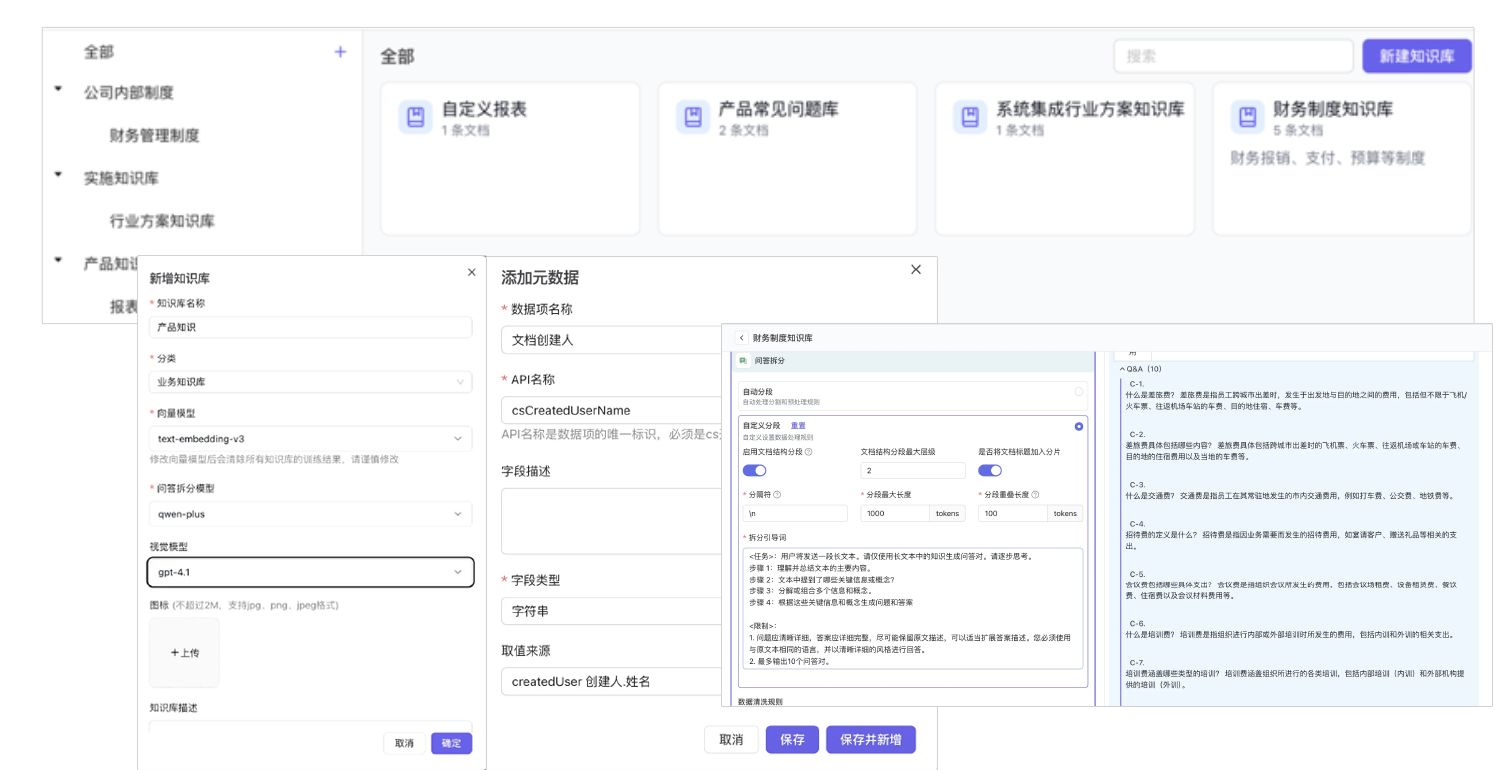 基于公司制度、财务规则和产品文档的知识库,支持自然语言多轮问答,涵盖报销制度、预算规则、产品使用指南等。