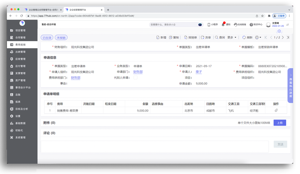 员工可在线提交出差计划并关联预算,提升申请效率,确保费用事前可控。
