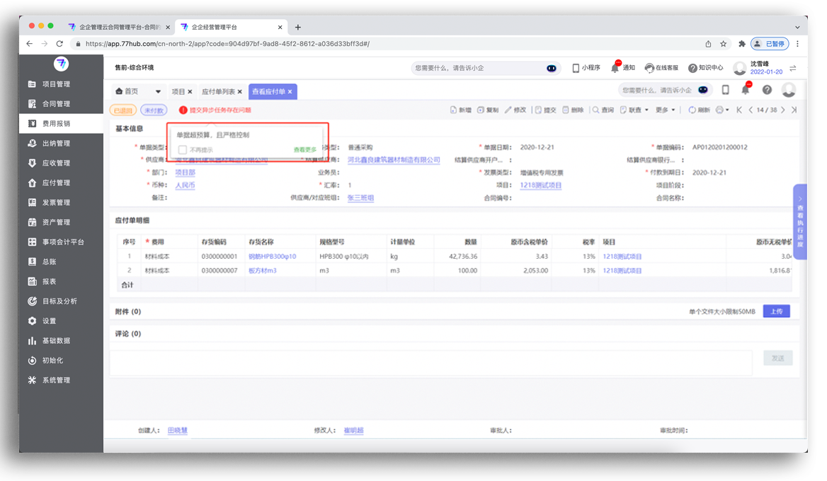 实时对比预算与实际发生费用,发现超支或异常,提升预算管理的透明度与可控性。