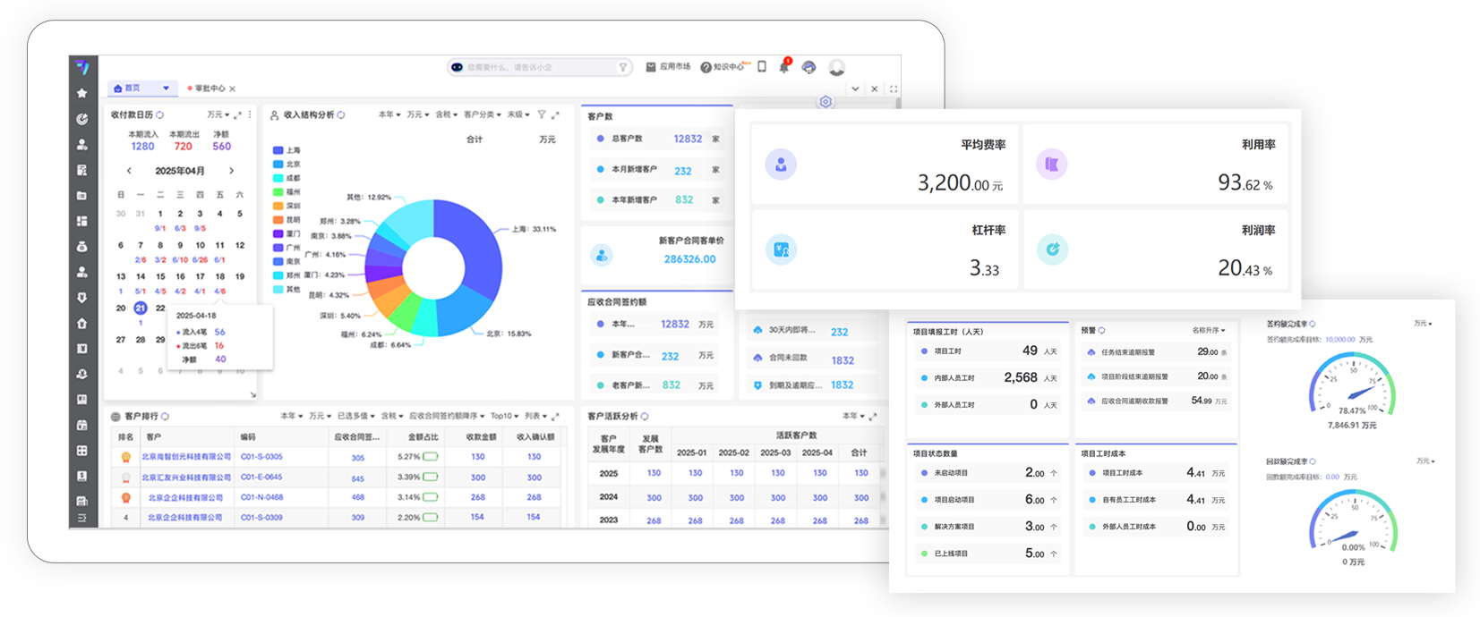 客户通过企企服务业ERP的战略决策平台,能够实时汇聚企业各业务线的财务、客户、项目等核心数据,形成全景经营视图。避免了信息孤岛和数据滞后的问题,让企业管理者随时掌握经营动态,快速定位问题根源。