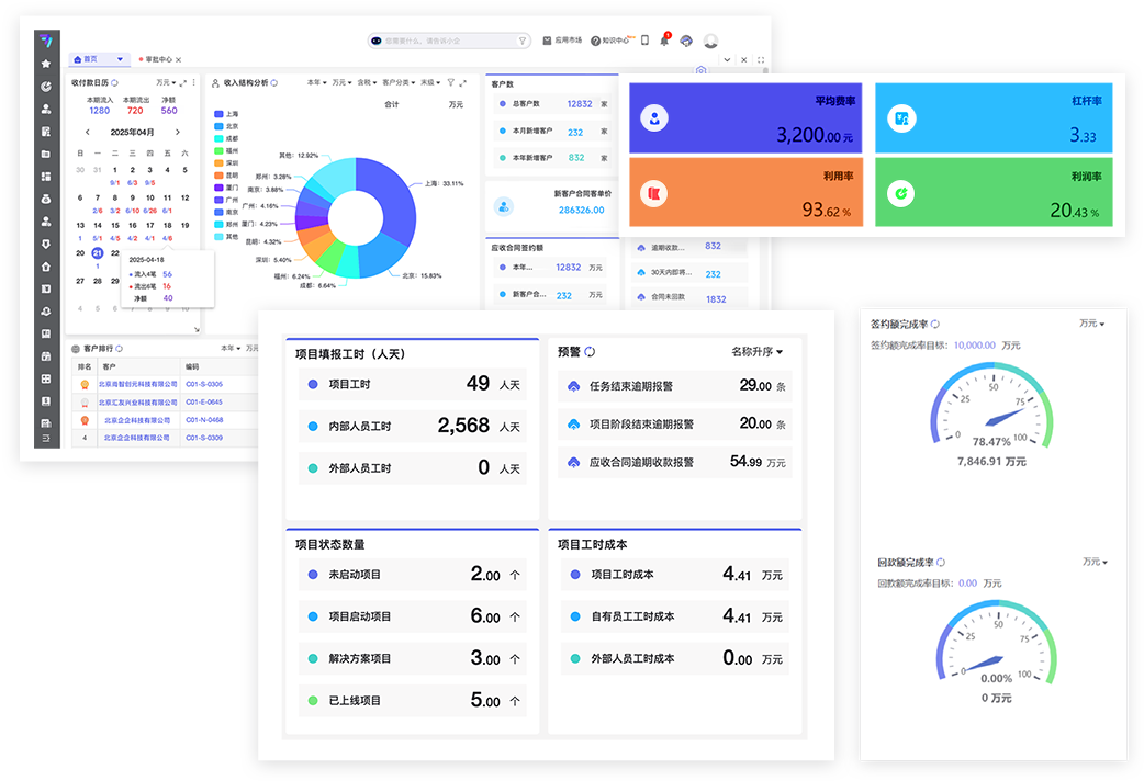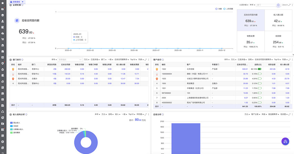 实时追踪销售线索、商机转化、合同签约与回款进度,直观展示业绩目标达成情况。通过数据对比与趋势分析,帮助销售团队聚焦优质客户群体,提高签约率与回款效率,全面提升销售管理与业绩增长。