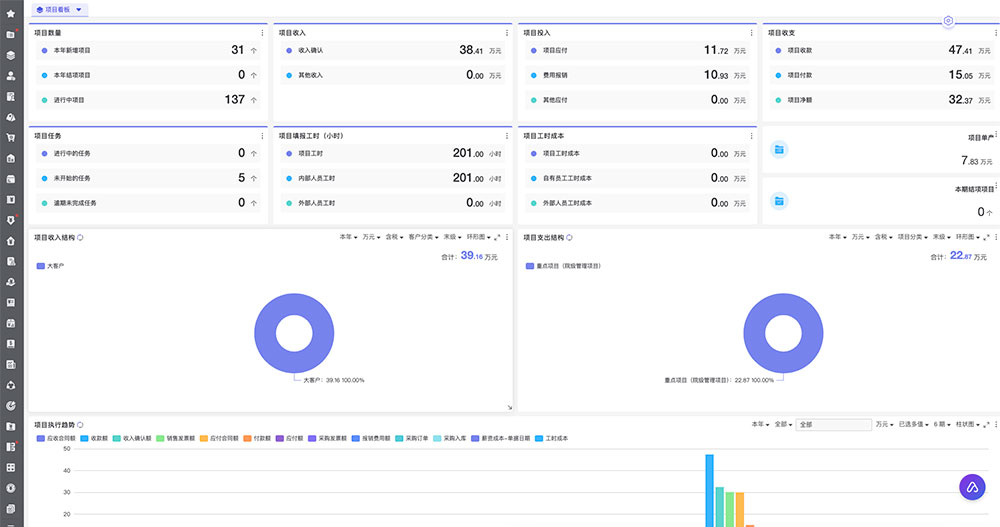 覆盖从立项、预算、执行到交付的全流程,实时监控进度、成本、资源与质量,提供延期与超支预警,确保项目按需按时交付。帮助企业提升项目管理透明度,平衡资源与利润,增强客户满意度与竞争力。