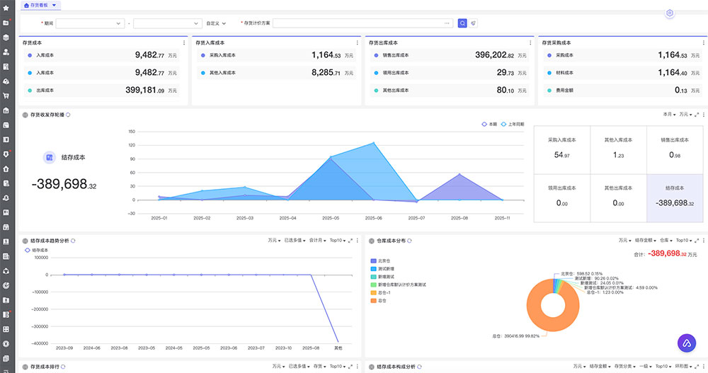 动态监控库存水平、周转率与呆滞品情况,提供智能补货与调拨建议,帮助企业保持库存合理性。通过数据驱动降低资金占用与仓储成本,提升库存利用率,实现供应链上下游的精准衔接与高效协同。