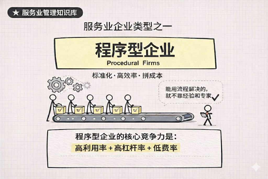 程序型(效率型)企业,是服务业中最接近“流水线逻辑”的一类企业。它们解决的,往往是标准化程度高、可重复的问题。