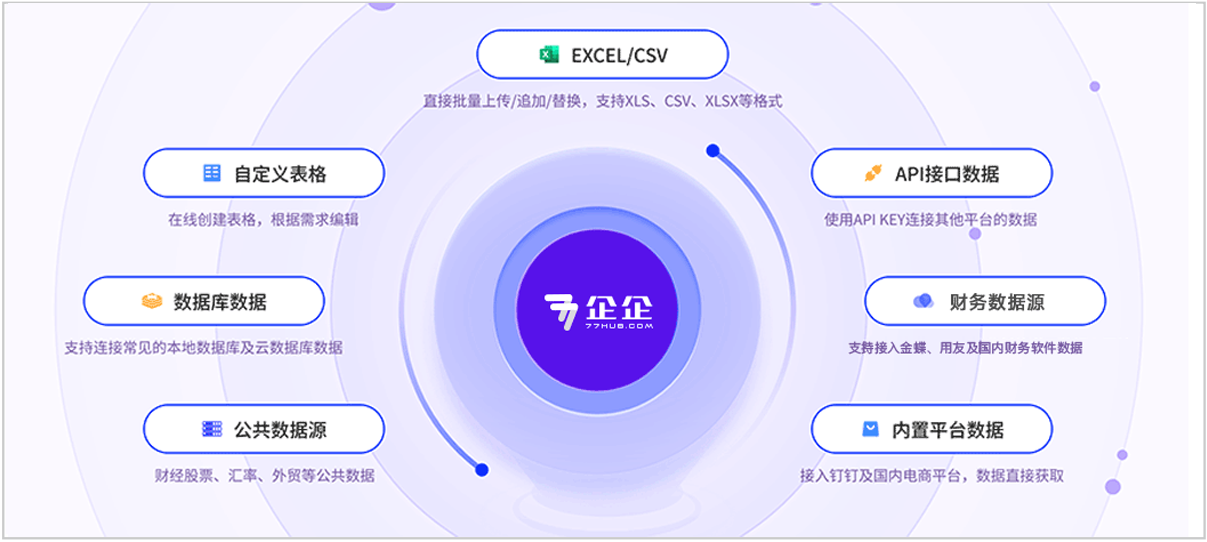 支持Excel、CSV文件以及API接口和数据库数据的清洗,满足不同场景下的数据处理需求;提供在界面上直接修改、删除或添加数据的功能,并支持自定义赋值和条件赋值,用于数据分组和格式标准化,确保数据高效质量并提升分析效率。
