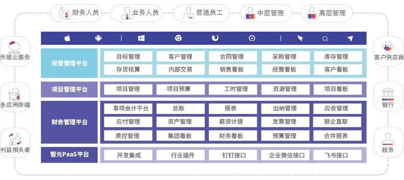 覆盖项目、合同、费控报销、供应链、财务管理