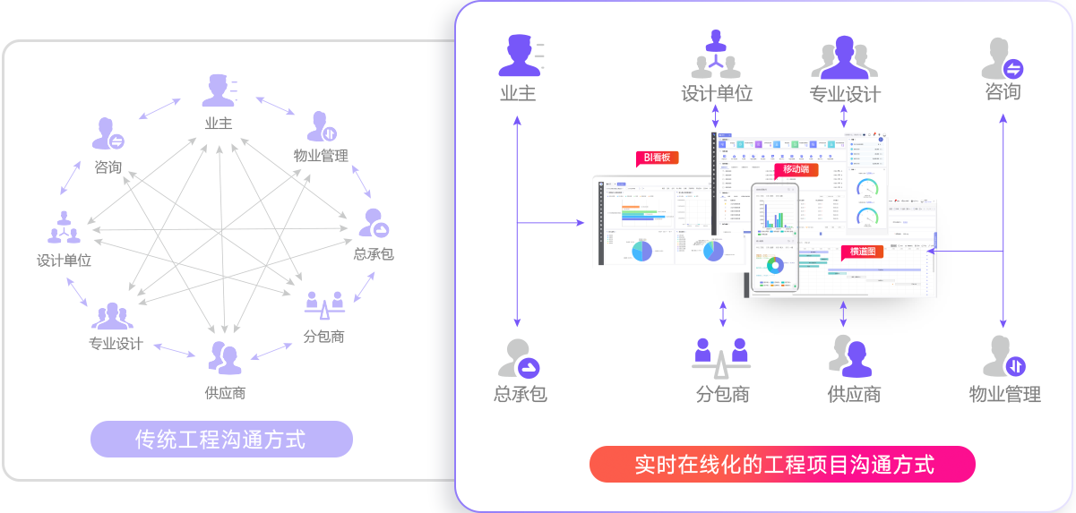 通过集成实时的、统一的底层数据平台,帮助建筑产业多参与方实现实时的信息交互及管理决策。