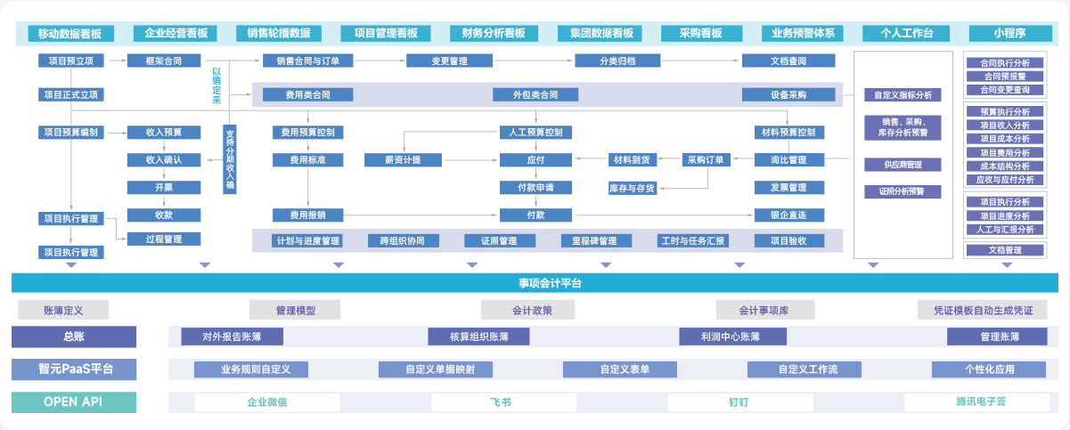 覆盖项目、合同、费控、报销、财务全流程全数据管理