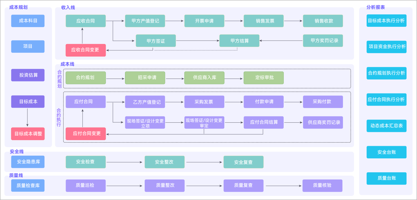 企企服务业ERP支持项目全周期的目标成本管理,从可研到施工图阶段可编制多版本目标成本,按控制科目精细化拆分,动态对比与更新。通过提前锁定目标利润与成本基线,帮助业主/建设方实现全过程成本可控,保障投资收益最大化。