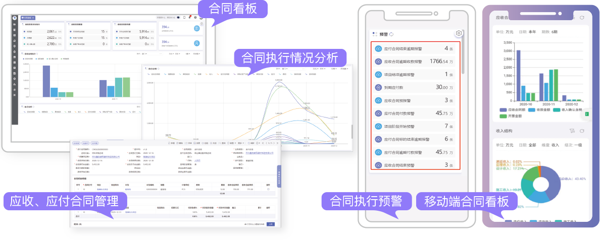 从合同创建、审批、执行、变更、关闭、分析和预警全流程管理,实时掌握合同执行与收付款进度。