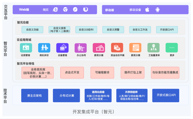 ● 开发集成平台:提供强大的定制能力,内置丰富的业务规则,可快速构建通用业务功能,并通过可编程脚本实现更复杂的业务应用,可实现与标准功能的无缝集成。