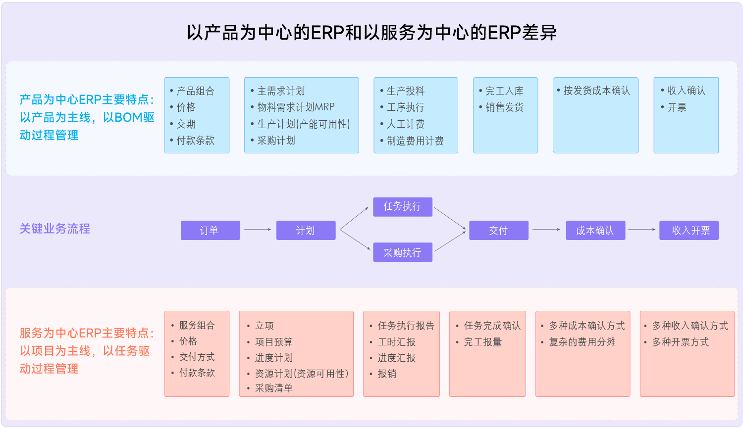 面向专业服务行业的ERP称为专业服务自动化Professional services automation (PSA),其管理的核心是项目,而制造业的ERP管理的核心是物料。这两类ERP有本质的区别,Gartner在其研究报告中也把ERP分成以产品为中心(Product-Centric)和以服务为中心(Service-Centric)两类分别发布研究报告。