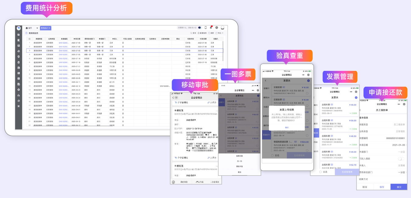 覆盖项目、合同、费控、报销、财务全流程全数据管理