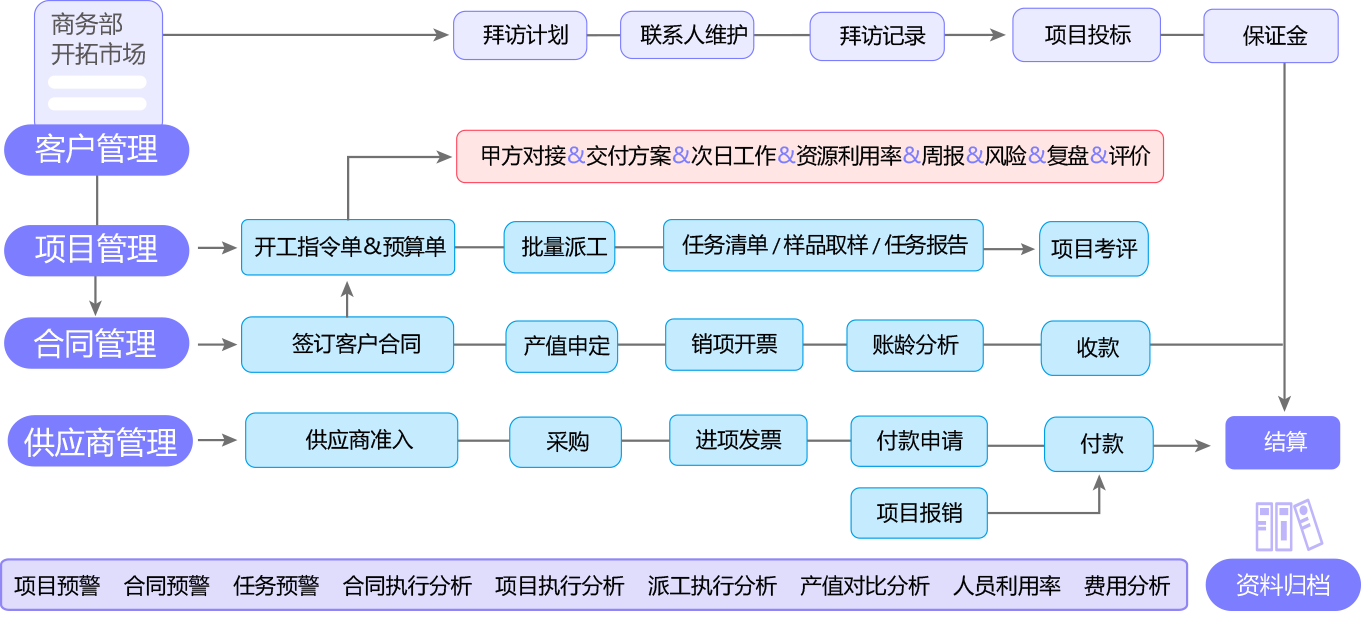 实现项目过程、成本管控、交付质量、业财融合等管理
