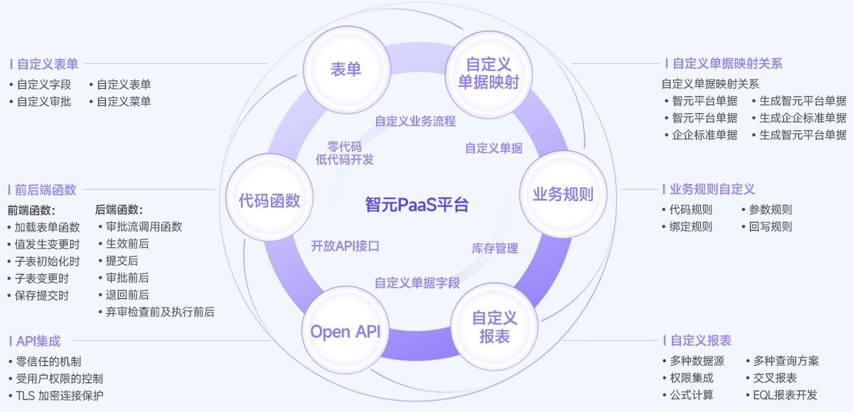 智元平台搭建出来的个性化单据和企企服务业ERP的标准单据之间实现协同管理。