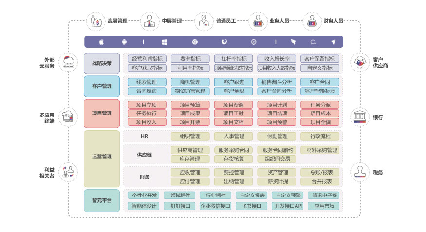 企企服务业ERP是由企企科技围绕先进企业,自主研发的一款以服务为中心的云ERP,包含主要功能包含五大平台:商业智能平台、项目管理平台、经营管理平台、财务管理平台、智元PaaS平台,致力于用信息技术帮助企业连接世界,帮助企业提升经营效益。