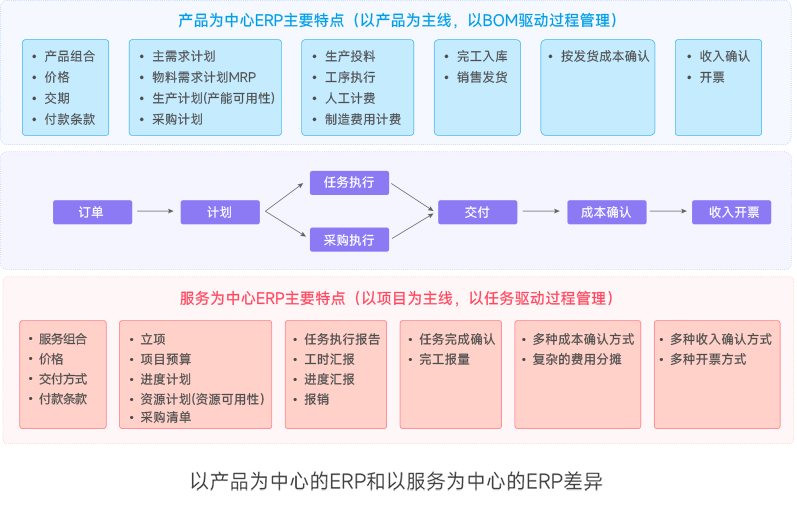 这两类ERP有本质的区别,Gartner在其研究报告中也把ERP分成以产品为中心(Product-Centric)和以服务为中心(Service-Centric)两类分别发布研究报告。