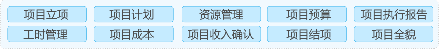 1.项目管理平台:完整的项目闭环管理解决方案,包括项目立项、进度计划、资源计划、预算、任务执行、工时汇报、项目成本和项目开票等功能。