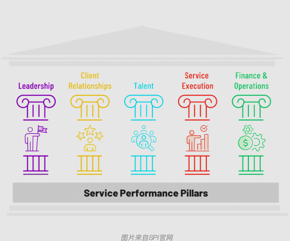 SPI相信,专业服务组织可以通过优化五大服务绩效支柱来取得成功: