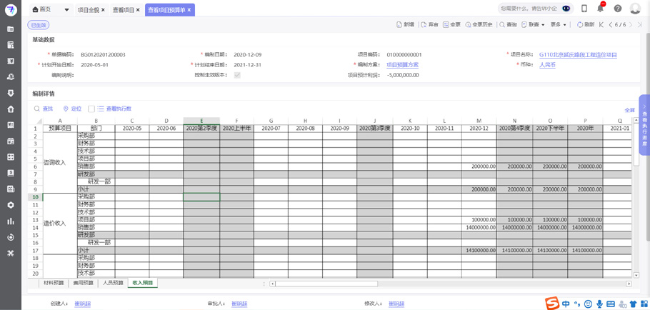 •在线制定项目费用和材料预算,费用关联项目及项目阶段,自动按照自定义规则进行预算控制;