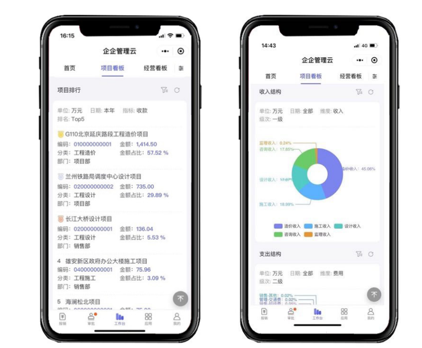 •支持移动端项目面板和经营分析,助力高效管理决策。